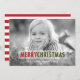 Ett enkelt, modernt helgdag-fotokort med rött och grönt fet textöverlägg. ELKE CLARKE© Versatile design med ord "God jul" i rött och grönt. Lägg till ditt bild, ditt namn och år, i ett vanligt typsnitt för typografi och skicka till familj och vänner för helgdagarna. Grönt och vitt rand mönster på baksidan.