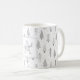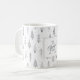 Skapa en julhelg i julklapp mugg personlig med ett monogram och handskrivet skript namn som innehåller mönster av modernt, hand plockade abstrakt Julgranar och skogsmark träd under vintern snö i silver och vitt. Kontakta designern via Zazzle-Chattan eller makeitaboutyoustore@gmail.com om du vill att designen ska ändras eller på en annan produkt.