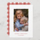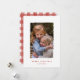 Skicka lite glädje med det här enkla, moderna julkortet som innehåller ett deckle-foto kant ram och en handmålad rödfärgad bakgrund på motsatt sida.