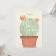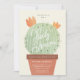En fantasifull inbjudan till baby shower av Stacey Meacham med originell, handritad akvarellillustration av taggig kaktus med ljusa blomknoppar i en terrakotta kruka.