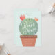 En fantasifull inbjudan design för bröllopsdusch av Stacey Meacham med originell handritad akvarell stickig kaktus illustration med ljusa blomknoppar i en terrakotta kruka.