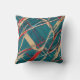 Detta är ett steg längre än jazzzys textilier från 1950, ett modernt friformsformat radtryck på en uppdaterad rik-teal bakgrund. Rand och banden av tan och rött med finare linjer i mörk blått ge vild stil till designen. Sömlös bild.