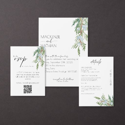 Modern kallelse till Winter Wedding Frosted Berrie Inbjudningar