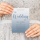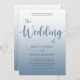 Detta är en modern och elegant "bröllop of" kalligrafbröllopsinbjudan i dammig blå skrift på en dammig blå gradientbakgrund. Enkel att anpassa texten för att skapa något som är unikt för verkligen.