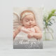 Modern Chic Elegant Calligraphy Script Photo Newborn Baby - tackkort. Har en vacker "tack"-text i ett handskrivet kalligrafiskript för teckensnitt i svan i svartvitt. Underbar för pojke eller flicka. På baksidan fördefinierade personliga meddelanden. Enkel att anpassa med ditt baby-foto och din information.