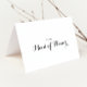 Detta moderna kalligrafi bröllopsfest tacksamhetskort är perfekt för en rustik bröllop. Den enkla och eleganta designen har klassisk och fancy script typografi i svart och vitt.
