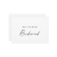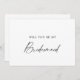 Elegant kalligrafisk vykort med en bruds förfrågan är perfekt för ett modernt bröllop. Romantisk minimalistisk design med vacker och elegant svart typografi på en vit bakgrund med ett rent och enkelt utseende. Anpassa vykortet. Personalisera baksidan av vykortet med ett personligt meddelande.
