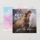 Modern kalligrafi med svängande svans och ditt favoritfoto bröllop inbjudan save the date.