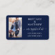 Modern Trendig Kalligrafi Skrift Bröllopspresentlista Infogningskort. Foto på framsidan. Marinblå
