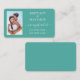 Modern trendig kalligrafi skrift Bröllopspresentlista Infogningskort. Foto på framsidan. Turkos