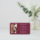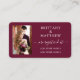 Modern trendig kalligrafi manus bröllopsregister infogningskort. Foto på framsidan. Burgunder