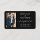 Modern trendig kalligrafi skrift bröllopsregister infogningskort. Foto på framsidan. Svart & vit