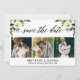 Modern kalligrafi, Vit Blommigt för vattenfärgsvit Grönt, 3 meddelanden om fotoFörlovning Spara datumkortet
