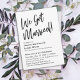 I denna enkla design återges frasen "We Got Married!" i ett handskrivet skrivstil och läggs till som en grafisk bildfil. All annan text är redigerbar och använder ett mångsidigt, serif-teckensnitt som du kan redigera som du vill. Baksidan har "Mr & Mrs" i samma moderna teckensnitt; detta kan tas bort om du föredrar att bara ha en enfärgad bakgrund, eller vill lägga till något annat. Alla lager lades till separat och lämnades olåsta för att ge dig maximal kontroll över designen; redigera detta utseende så mycket du behöver och tveka inte att höra av dig till mig om du behöver hjälp med processen. // 105 // Designad av Melody Watson för Paper Muserie.