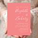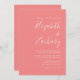Den här enkla moderna bröllopsinbjudan innehåller vit text på korallets rosa. Lägg till bildens och bildens namn i snyggtens handskriftsgrafi och detaljerna i sans serif-teckensnitt. Den omvända sidan är solid korall.