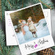Modern julkort med ett stort foto, kalligrafi skrift, rosa handskar och anpassad hälsning.