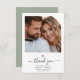 Detta moderna snygga tryckta roségulds hjärta tack-kort har handskrivna script-kalligrafi tillsammans med era namn i elegant serif-typografi under ert favoritbröllopsfoto. Detta är den dammiga salvia gröna och vita versionen.