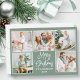Modern Roligt Calligraphy Script God jul 5 Photo Collage Helgdag Card - Sage Grönt Background