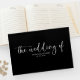 Den här kalligrafigästen bok i anpassningsbarna i elegant har en enkel och modern utformning och skapar den perfekten för ett vackert och chic bröllop. Utformningen har ditt namn och bröllop-datum i minimalistisk typografi och ett romantiskt och visstiskt handskript. Det sofistikerade svarta-och-vita färg-schemat ger en aning sofistikering till din speciella dag.