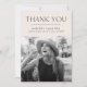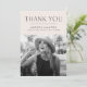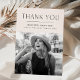 Modern studenten tackar dig för ett kort med "Tack" överst i ett svart, modernt brev med en gräddfärgad färgad som sliter kant vid studentens äldre foto. Anpassa fototackkortet genom att lägga till student namn, namn och studenten. Kortets baksida ger plats för det skrivna eller handskrivna meddelandet.