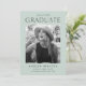 Fira din student spännande milstolpe med det moderna fotot tillkännagivande för studenten! Utformningen visar studenten överst med "Student" som visas nedan i svart, modern text. Student-fotot visas i en myntbild i grönt ram med torn kant. Anpassa meddelandet genom att lägga till student namn, namn, skolans planer och framtida planer (högskola, militär, karriärval osv.). Kortet återgår till visningen med en solid myntbakgrund för grönt.