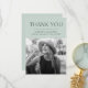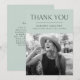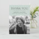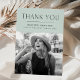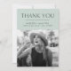 Modern tack för studenten-kortet med "Tack" överst i svart, modernt brev med en grönt som slits kant och som gränsar till studentens äldre bild. Anpassa fototackkortet genom att lägga till student namn, namn och studenten. Kortets baksida ger plats för det skrivna eller handskrivna meddelandet.
