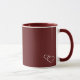 Fira kärlek i stil med denna elegant, två tonlägen mugg, designat med ett djärvt system för marun och vitt färg. Den ena sidan har en modern manusdesign av "Kärlek" i ord tillsammans med anpassade initialer och skapar den som en verkligt personlig och hjärtlig gåva. Den andra sidan accentueras med två enkla, känsliga vita hjärtan i hörnet, vilket gör att du får en aning underskattat romantik i designen. Perfekt för par eller som en gåva till årsdagar, Alla hjärtans dag, bröllop eller särskilda tillfällen, kombinerar detta mugg sofistikering med sentimentalitet.