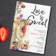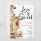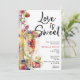 Elegant Modern Champagne och Strawberry Boho Blush Pink Summer Bridal Shower inbjuden med "Love is Sweet" kalligrafi