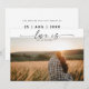Kärlek är tålmodig brölloppsfoto kort med modern kalligrafi och ett förtryckt meddelande på baksidan. Om du har några frågor, vänligen kontakta oss. Kimberly Brett.