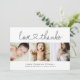 Vi presenterar vårt "Modern Kärlek och tack vare Anpassningsbar 3 Photos Baby Shower - tack för ditt kort" - en chic och ett hjärtligt sätt att uttrycka vår tacksamhet. Tack vare det här kortet finns det moderna Kärlek och tack vare ett hjärtskript och utrymme för foton i tre anpassningsbar. Anpassa dina tackkort med den här eleganten och visa dina favoritduschminnen. Med sitt moderna estetiska och anpassade inslag är detta kort en perfekt för att förmedla er uppskattning i stil. Perfekt för dem som uppskattar sofistikerade och personlig kontorsmaterial, är att denna design kombinerar tidlös elegans med modernt sans. Gör ett påstående med det här anpassadet tack för ditt kort som fångar glädje och tacksamhet från din babydusch.