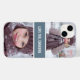 Vacker modern design iPhone-fodral med 2 av dina favoritbilder högst upp och längst ned med en mörkblå grå rand i mitten med typografi.
