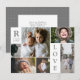 anpassad fotokollagekärlekjulnytt årlägg till dina 6 fotografiermodern rutnätslayouthögtidliga hälsningarfamiljens minneskortmonogram initial bokstavvitt och grått färgblock