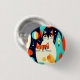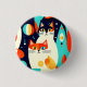 Knapp i ett modernt och modernt mönster i mitten av århundradet med två stiliserade katter i feta, geometriska former av orange, teal, svart och vitt. Abstrakt mönster och retroformer fyller bakgrunden, ge den som en roligt, vintage vibe med ett minimalistiskt kant.