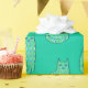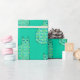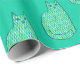Omslagning papper med en modern, retrokattdesign i mitten av århundradet, i en sputnik/stjärnburst mönster - mynta, kalkgrön, akvarium och turkos, skisserade i mörk teal, på en grönt/grönt för fredsdjur med medelhög mynning