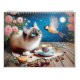 Den här 12-månaderskalendern innehåller 14 unika illustrationer av olika katter, allt i olika inställningar.