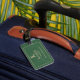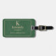 Classic design featuring khaki color lettering on forest green denim print on this minimalist travel luggage tag. Easily change or remove initial, name, location, to make it yours using the Template provided. This is a 2"x3.5" (standard business card size) quality, sturdy and weatherproof luggage tag with a leather strap. For yourself or a thoughtful gift for someone special, this is also ideal for laptop bag, backpack, attaché-briefcase or gym bag. The back is white; you can add color, text and/or a photo using the easy Design Tool, if you like.
