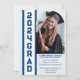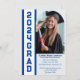 Modig och modern Grad-inbjudan fungerar för Mitten School, High School eller College. Känn din leende Grad med en banderoll i din blå och vita färg. Grad party info kan läggas till i grund! En del av Studenten! Samling, leta efter en hel serie Grad produkter.