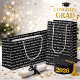 En stilren monokrom layout med rader av krispig vit Klass av 2026-text mot en djup svart bakgrund, som ger en ren och modern examensestetik.