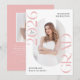 Notera student stora landvinning i stil med detta moderna fotomeddelande från studenten. Trendigets utformning har "Klass 2025 Grad" i fet ljus rosa text med subtila skriptaccenter med solid vit bakgrund. Fotot från student lodrät visas i en avlång ram i mitten av meddelandet. Anpassa rosa studenten-meddelandet till namn och skolan i student. Tillkännagivandet återgår till visningen av ett ytterligare foto som visas inuti en vit kvadrat ram med anpassningsbarna som visas nedan. Snyggt studenten:s tillkännagivande är perfekt för student i högskola och högskola.