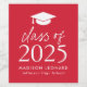 Lägg till en personlig till studentfesten med de moderna studenten vin-märkena! Vin-etiketterna har en vit studentmössa överst på designen med "Klass 2025" i fet vit text på röd bakgrund. Anpassa den röda märkningen studenten vin med student namn, skolan och studenten. Denna utformning är perfekt till använda för vin, mousserande cider eller andra drycker vid högskoleexamen i party!