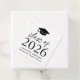 Lägg till en personlig vid studentfestens favoritsäckar med de här moderna studenten-favoritmärkena! De enkla förmånstaggen har en svart studentmössa överst i designen med "Klass 2025" som visas i fet svart text. Anpassa märkrn till student namn, skolan och studenten. Märkrns baksida ger anpassningsbarna utrymme. Denna utformning är perfekt till använda för högskoleexamen eller högskoleexamen.