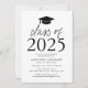 Inbjudan gäster för att fira skolan med vår moderna klass av inbjudningskort i 2025 studentfester. Inbjudan har en studentmössa överst med "Klass 2025" som visas i svart, modern text. Anpassa inbjudan genom att lägga till uppgifter om student namn, skola och studentfest. Trendiget studentfest inbjudan går tillbaka till visning ett svart och vitt trellis mönster.
