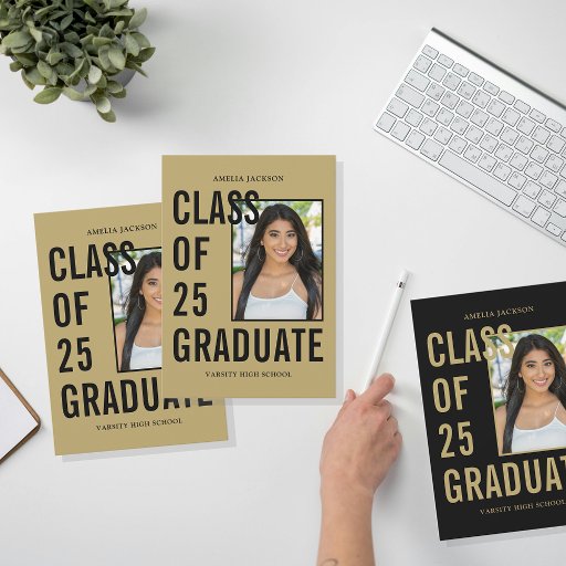 Modern klass med 25 Guld-Studentfest Inbjudningar