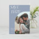 Lägg märke till din speciella dag i stil med den moderna klassiska Eleganten Dusty Blue Bröllop spara datum. Med en tidlös dammig blå palett i färg ger den här designen luft av sofistikering som passar perfekt ihop med alla bröllop-teman. Anpassa den med ett eget foto som är inramat i en klassbåge och personlig information för att göra den till din rätta. Denna snyggt för att spara datumet är tillräckligt mångsidig för att komplettera ett stort antal teman, från chic och modern till rustik och boho. Du kan skicka det digitalt till sparan och hålla dig organiserad. Ordna nu och se till att dina gäster är lika upphetsade som du!