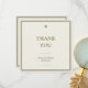Uttryck tacksamhet med tidlös elegans med detta moderna klassiska bröllopskort med monogram i elfenben och guld. Designad med en elfenbensvit bakgrund som ramas in av en raffinerad dubbel guldgrön kant och accentuerad med en delikat palmikon, förenar den modern minimalism med klassisk sofistikation. Framsidan har fet text som lyder "TACK" med era namn och bröllopsdatum under, medan baksidan kan anpassas med er monograminitialer för en meningsfull och personlig touch.
