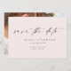 Den moderna klassiska Rosan Bröllop spara datum kombinerar en contemporaryns minimalistiska utformning med elegantens skript i en mjuk rosa, perfekt för vår eller sommarfirande. Med ett alternativ för ett personligt foto fångar den på ett underbart sätt en modern men ändå boho-vibe - upplev gärna om du behöver hjälp med att anpassa dig!