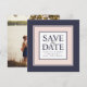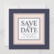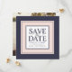 Meddela bröllop i elegant stil med vår moderna klassiska skrift spara datumkorten i en färg-palett med och marin sjö. Unika fyrkantiga kort har information om bröllop (namn, datum och plats) som visas i mitten på en vit ruta med "spara datumet" i en blandning av marint blåblock och kalligrafi-skript, som är ramade av ett stort gräns av rosa och midnattsblått för en dramatisk presentation av chicen. Om du vill kan du lägga till ett favoritfoto på baksidan eller helt enkelt ta bort exempelbilden om du vill visa en enfärgad förlovning med blå bakgrund.