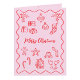 Modern klotterillustration i rosa och rött helgkort