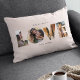 VARJE DAG ÄLSKAR JAG DIG MER. Fantastisk present på Alla hjärtans dag, årsdagar eller till nygifta: Denna moderna kuddcover med fotokollage är lätt att anpassa med dina 4 favoritfoton i den minimalistiska LOVE-typografin. Texten runt ordet KÄRLEK kan personanpassas.