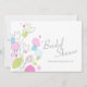 Fin enkel grått-rosa-blå och grönt-blomma och grafisk konetti-stil-petals blommigt inbjudningskort för möhippan. Redigera den här färgstarka inbjudan med ditt eget ord. Unik design av Sarah Trett.